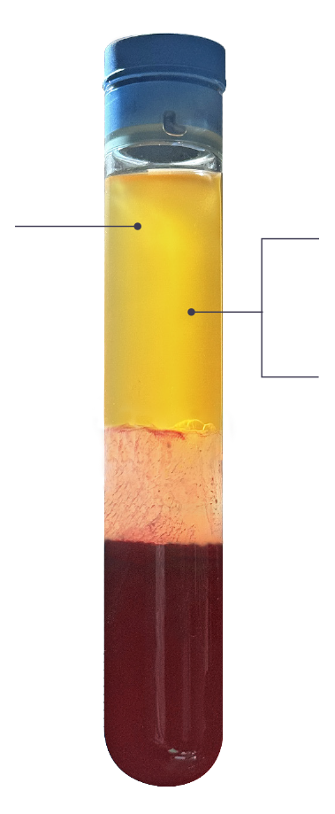 Proprietary gel separator forms a solid barrier to prevent RBC and WBC remixing and platelet adherence
